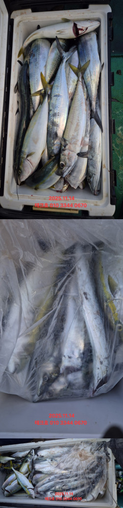 안녕하세요?? 읍천 테크호입니다.11/20(목) 대삼치, 삼치, 방어입니다.바람이 많이 안 불거라는 예보를 뒤집고 아침엔 제법 강한 바람이 불었습니다.강한 바람도 잠시, 9시부터는 바람이 다 죽어버리네요. 오늘 대삼치, 쏟아지는 삼치, 방어쿨러조과 올려드립니다. 1타 1피,2피 막올라옵니다. 내일 9물로 물때 바다상황좋습니다내일(금) 출항합니다.*금)대삼치(선비5만원)오전-자리있음/오후-자리널널 *토)한타임 09시출항-자리많음 (7시간 선비7만원 )*일)오전 오후 자리 많음 (선비5만원) *한타임 08시출항-자리많음 (7시간 선비7만원)*월)오전,오후 자리많음(선비(5만원) *야간 대전갱이(테크1호) 금.토.일 출조 모집합니다테크호 010 3344 0670 //010 6756 0309 *** 경주 테크호 예약 안내 *** 예약문의 : - 010-6756-0309 - 010-3344-0670 오시는길 : 경북 경주시 양남면 동해안로 592 (읍천낚시)계좌 : 수협 001067560309 서영민 홈페이지 : https://tech.sunsang24.com/밴드 : https://band.us/band/72249647 ->대삼치//방어 Big Game(테크호)<- 샤크 신동만 프로와 함께전국 최초로 대삼치 선상낚시를 개발,발전 시킨 선두 주자 테크호입니다.대삼치, 방어 최적화된 낚시선으로넓은 통로와 선수, 선미 넓직한 공간으로 안전하게 캐스팅할수 있습니다 앞뒤 대형 쿨러 배치되어 있어쿨러없이 승선 가능합니다 출조시간오전 6시 30분출항 ~ 11시 30분 입항오후 12시30분 출항 ~ 17시30분 입항 **선비5만원(선비할인이벤트)*종일반 오전8시~15시(선비7만원)*독배 문의주세요 *출항 30분전 도착*신분증 지참 빅게임에 최적화된 장비(로드+릴)1만원 대여(장비대여시 연락 주세요) 쇼크리더, 컵라면, 생수 면장갑, 음료수, 커피 무료제공 선박에서 메탈지그 구입가능 메탈지그, 대형 스트로폼박스, 각종 채비 읍천낚시 구입가능 합니다 처음 입문하시는 조사님 빈몸으로도 가능합니다