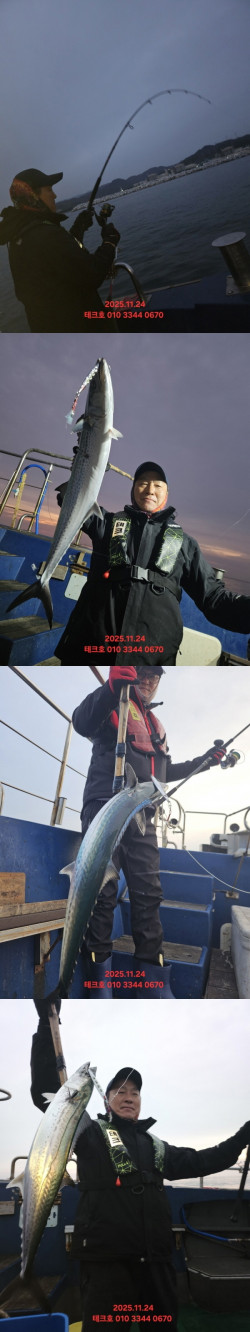 안녕하세요 읍천 테크호입니다.11/21(금) 대삼치, 삼치, 방어 조과입니다.오늘 포인트 도착 후 첫 캐스팅에 바로 히트!! 미터 오버 대삼치가 올라옵니다.삼치, 방어는 처음하는 분도 던지면 물고 던지면 물고 다들 잘 잡으시네요.찐한 한방 손맛의 대삼치,누구나 잡을 수 있는 삼치, 방어 낚시에 도전해 보세요11/22(토) 대삼치 예약마감,11/23(일) 대삼치한타임 오전08시~15시 출항 - 자리많음오후 12시 30분 출항 - 자리많음*** 경주 테크호 예약 안내 *** 예약문의 : - 010-6756-0309 - 010-3344-0670 오시는길 : 경북 경주시 양남면 동해안로 592 (읍천낚시)계좌 : 수협 001067560309 서영민 홈페이지 : https://tech.sunsang24.com/밴드 : https://band.us/band/72249647 ->대삼치//방어 Big Game(테크호)<- 샤크 신동만 프로와 함께전국 최초로 대삼치 선상낚시를 개발,발전 시킨 선두 주자 테크호입니다.대삼치, 방어 최적화된 낚시선으로넓은 통로와 선수, 선미 넓직한 공간으로 안전하게 캐스팅할수 있습니다 앞뒤 대형 쿨러 배치되어 있어쿨러없이 승선 가능합니다 출조시간오전 6시 30분출항 ~ 11시 30분 입항오후 12시30분 출항 ~ 17시30분 입항 **선비5만원(선비할인이벤트)*종일반 오전8시~15시(선비7만원)*독배 문의주세요 *출항 30분전 도착*신분증 지참 빅게임에 최적화된 장비(로드+릴)1만원 대여(장비대여시 연락 주세요) 쇼크리더, 컵라면, 생수 면장갑, 음료수, 커피 무료제공 선박에서 메탈지그 구입가능 메탈지그, 대형 스트로폼박스, 각종 채비 읍천낚시 구입가능 합니다 처음 입문하시는 조사님 빈몸으로도 가능합니다
