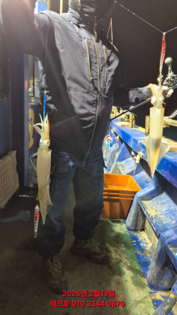 안녕하세요? 읍천항 테크호입니다 2/14일]야간 한치 -테크2호 씨알좋은 한치가 올라오기 시작하네요 좋은 날씨.물때로 이어져 화끈한손맛 기대됩니다 **오늘(일) 야간한치**오후